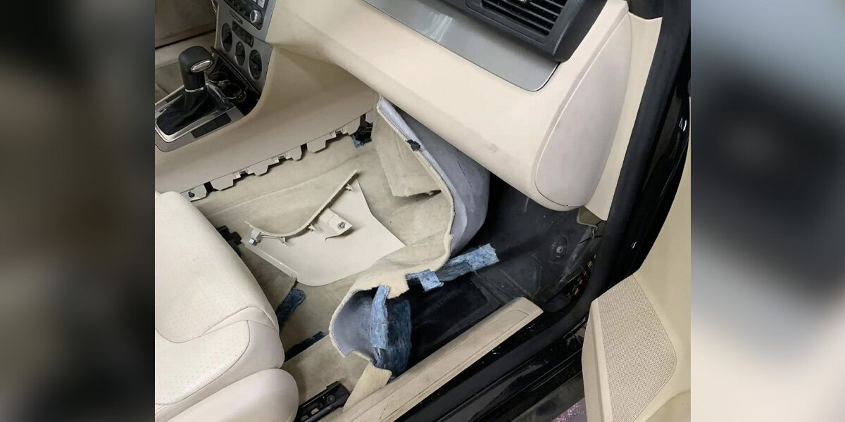 「エアコンを使うと、キャビンの中で水が凝縮して、排水口を通って外に流れるんだけど、排水口が詰まると水が床下に漏れ出しちゃうことがあるんです。」