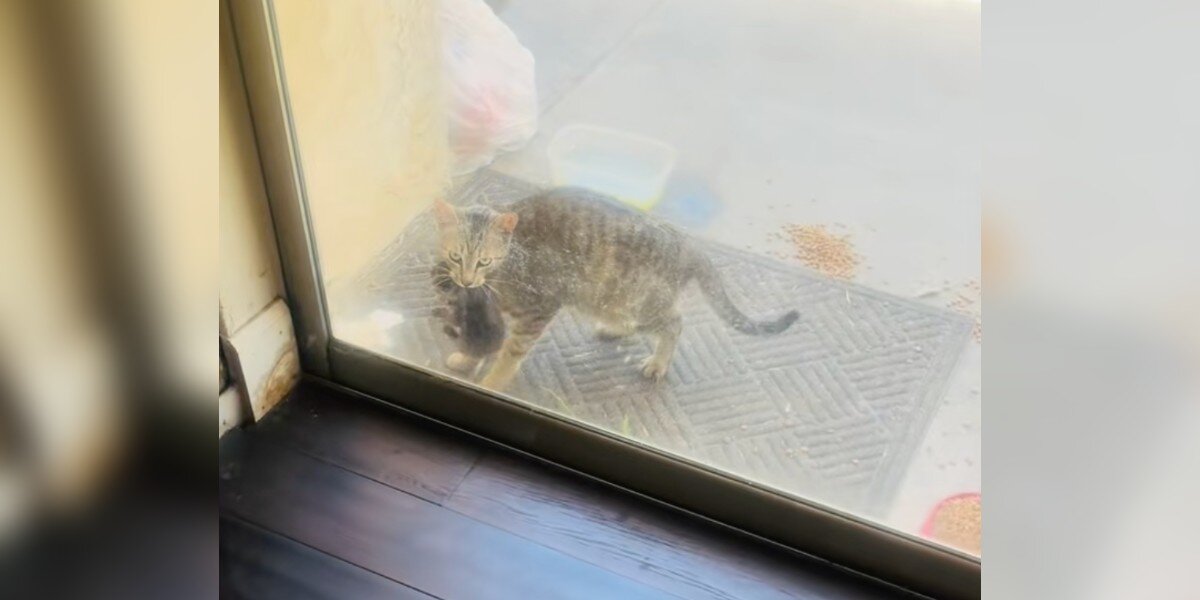 ある日、Jenniferとその家族は、近所の野良猫、Doriと友達になりました。最初は警戒していたDoriですが、少しずつ彼らに心を開いていきました。そんなある日、彼女は家の裏口にやってきて、ガラス越しに家の中をじっと見つめていました。なんと、口には何かを咥えていたんです! 😺✨