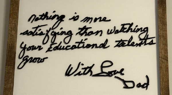 「あなたの学びが成長するのを見るのは何よりも満足だよ。愛を込めて、パパ」