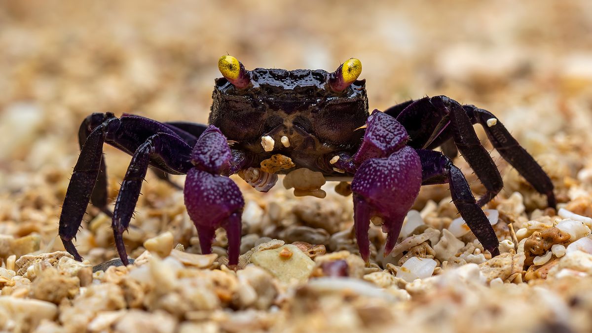 ヴァンパイアクラブは、Geosesarma という小さな半水生のエビ科に属する生き物で、主に東南アジアに生息しています。目がキラキラしていて、鮮やかな紫色の体を持つこのクラブは、その見た目からとっても人気!✨
