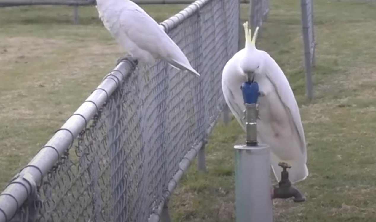 オーストラリアのコカトゥが飲み水の給水機を使えるようになった!🐦💧