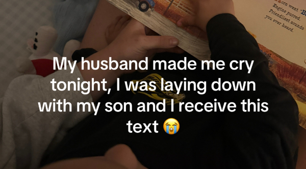 ママのエミリーは、ただシンプルに彼女の幼い息子に本を読んでいるときに、お父さんからのメッセージで驚かされました📱✨