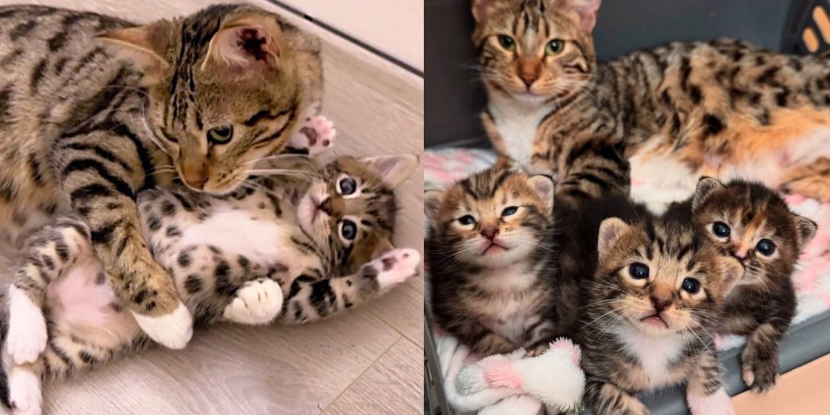 ゴールディのおかげで、3匹のかわいい子猫たちもすくすく成長しました。🐾 彼らはふっくらして、毛もツヤツヤに!お母さんのゴールディも、とても優しく子猫たちに愛情を注ぎ続けました。