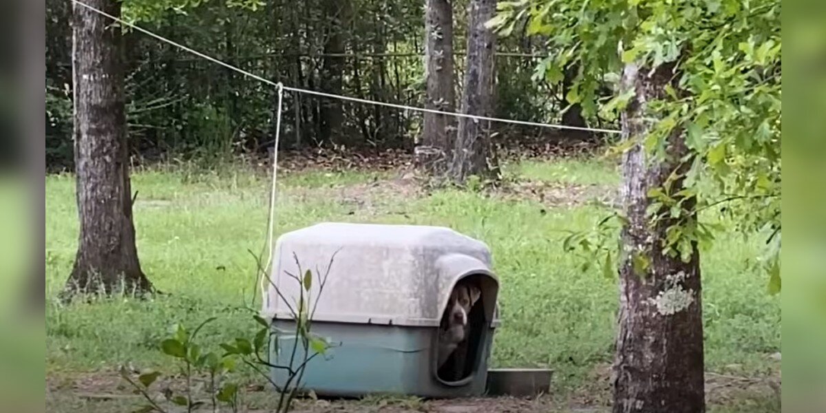 2年前、エイプリル・モーガンさんと彼女の婚約者、J.C.が新しい家を見に行った時のこと。庭に入ると、何とそこには古い犬小屋と、一匹の犬がいたんです!🐶