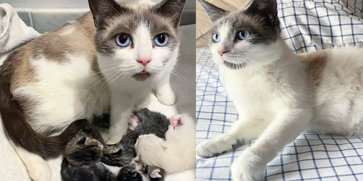 そして数日後、スissiは4匹の健康な子猫を出産しました!2匹が男の子で、2匹が女の子。しかも、すべて1時間半以内に生まれました。スissiはその間ずっとゴロゴロと喉を鳴らして、里親の存在に安心しているようでした。🐱