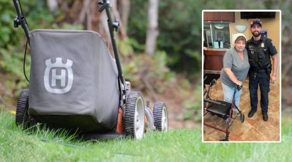 なんと、年配の女性、ドリー・オリバーさんが、一方の手に歩行器、もう一方の手で芝刈り機を押しながら奮闘していたのです。😮
