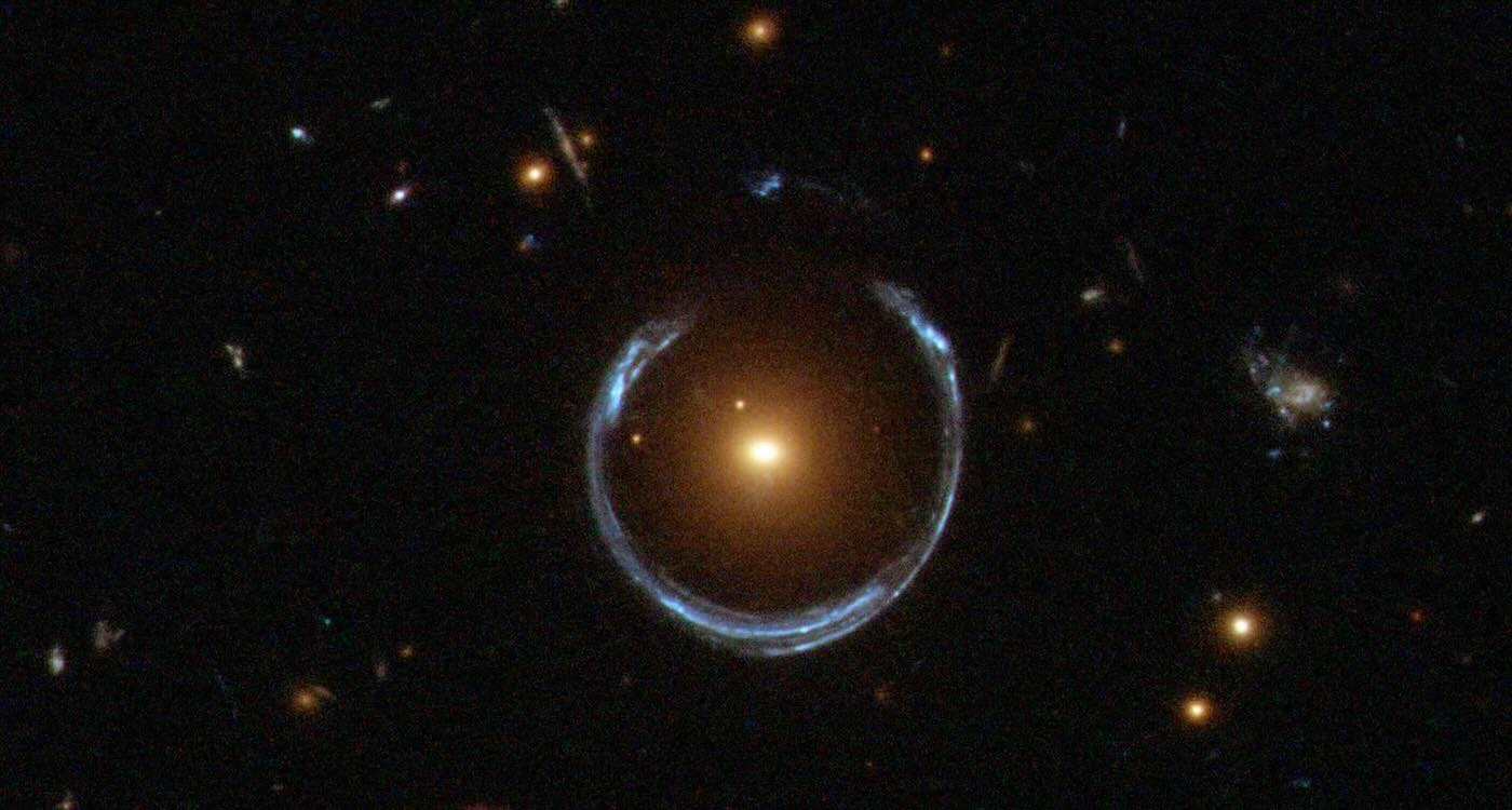 この新しいブラックホールは、すごい力を持っていて、周りの光を曲げることができるんだ。そのおかげで、背景にある別の銀河の光が、ホースシューの形に見える「アインシュタインリング」っていう現象が生まれるんだよ!🌈