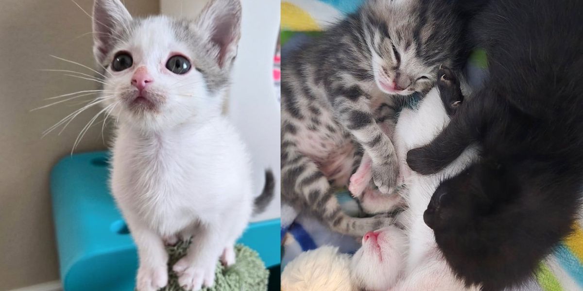 最初は元気いっぱいだった子猫たちも、数日後には顔や脚に水泡ができて、元気がなくなっちゃった💔。ジェンさんは、ミルクを直接注入するチューブフィーディングに切り替えたの。