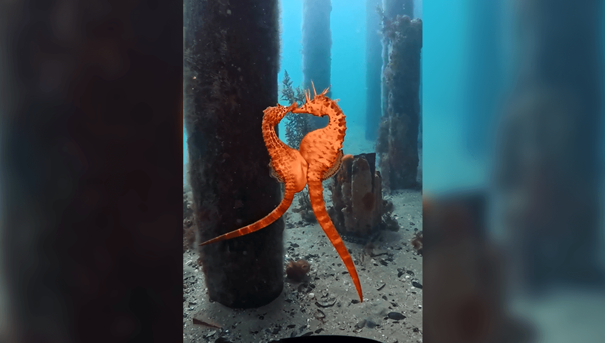 海の深いところには、たくさんの驚きが隠れているよ!神秘的な新種の生き物から、優雅に漂うタツノオトシゴまで、いろいろな生物がいるんだ。最近、あるダイバーが素晴らしい瞬間をキャッチして、自分のソーシャルメディアでシェアしたの!それは、タツノオトシゴのカップルが卵を交換しているところなんだって💞。