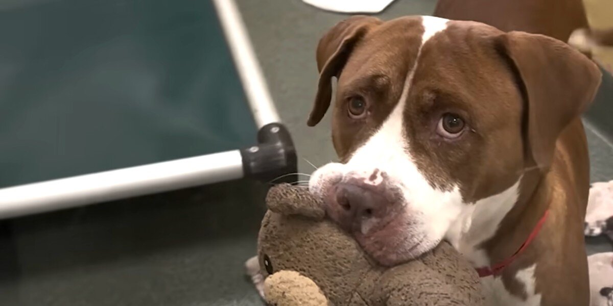 ピーナッツの大好きなものは「ぬいぐるみ」!🐶❤️ スタッフがぬいぐるみを渡すと、何時間も持ったままでいるんだって。シェルターの広い環境に圧倒されているようだけど、ぬいぐるみを抱いていることで安心感を得ているみたい。