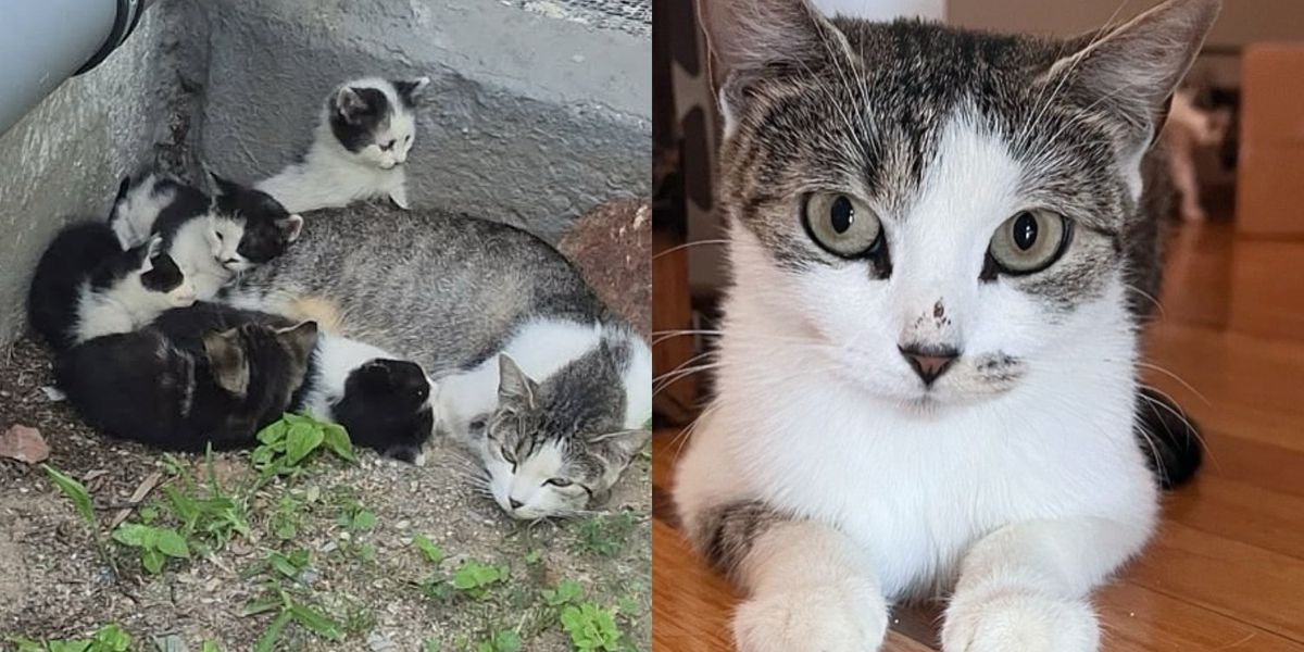 ある日、公営住宅の前で、お母さん猫とその子猫たちが見つかりました。彼らは一緒に暮らしていて、特にお母さん猫はどこにも行こうとしませんでした。彼女は子猫たちを絶対に置いていかないという強い意志があったんです!😺
