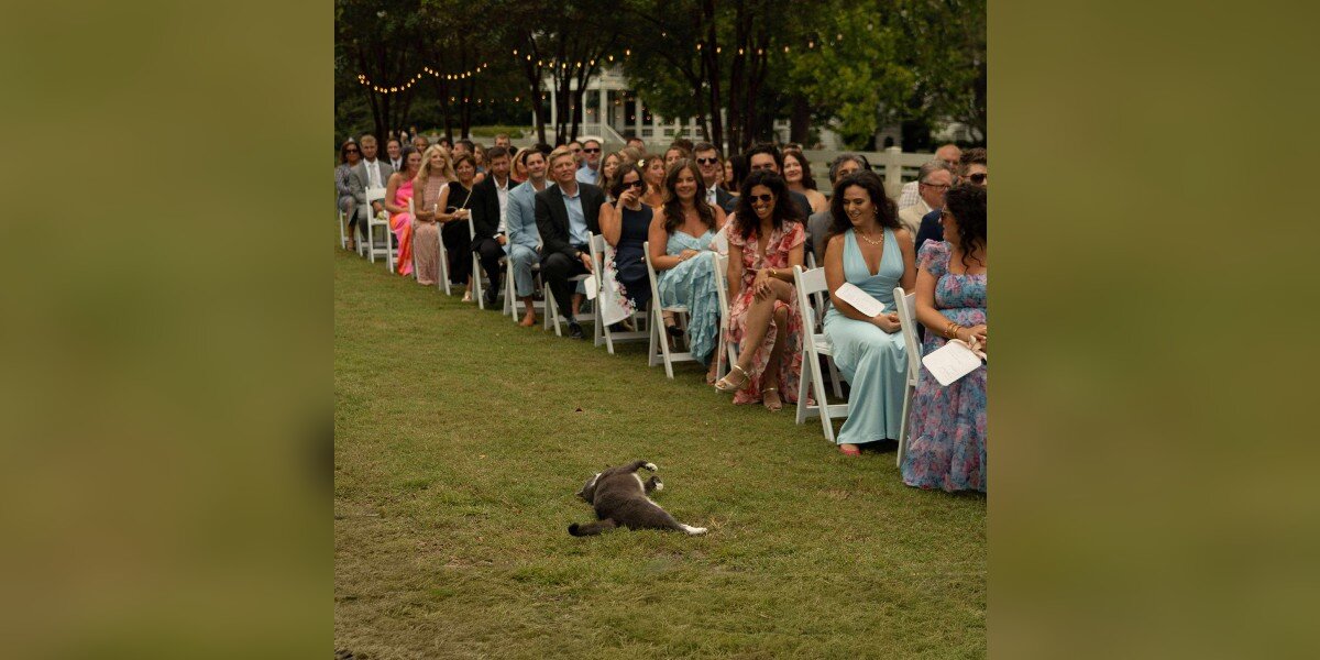 わかるかなぁ、こんな可愛いアクシデントがあると、結婚式ももっと特別な思い出になるよね。グレイソンくん、まるでサプライズゲストみたい!猫の気まぐれ、最高だね〜。
