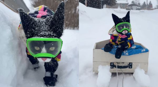 すごい猫ちゃんだね!冬の冒険が楽しそう〜✨