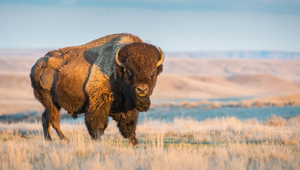 アメリカの北部に住む最大の哺乳類、バイソン。彼らの祖先は、何百万年も前にこの大陸に到達し、ずっとここに住んでいたんだけど、実は人間のせいで絶滅寸前にまで追い込まれたんだよ。そんなバイソン、今ではアメリカの国の動物になっているの。すごいよね!