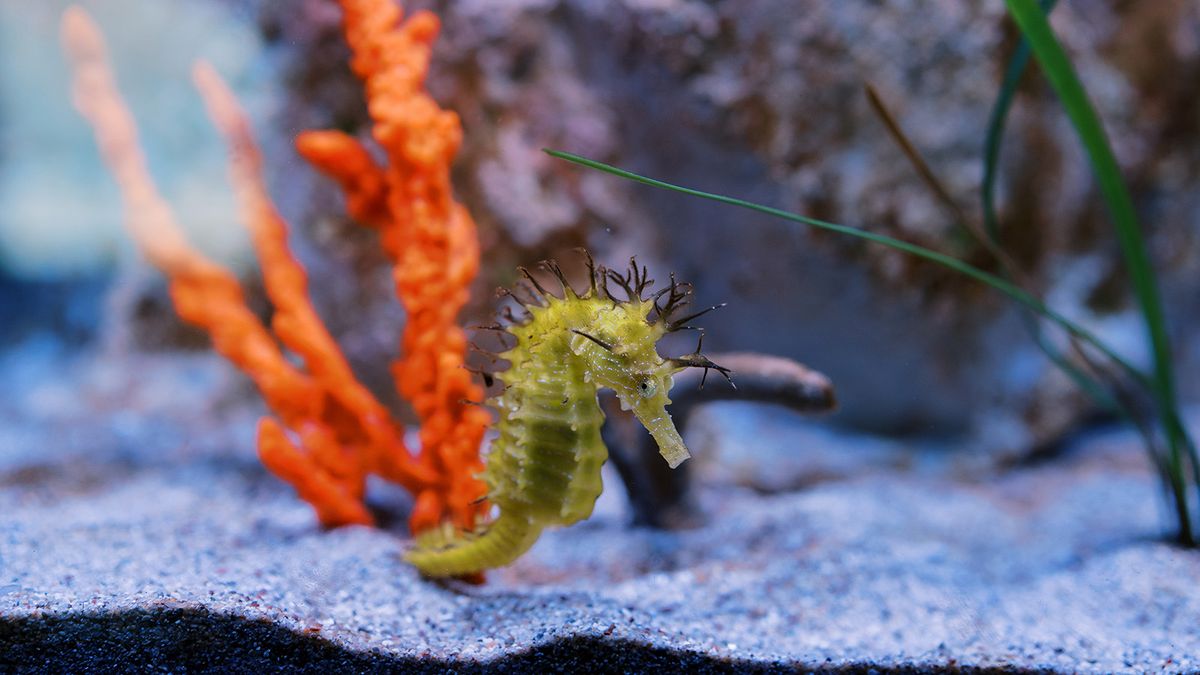 シーホースにぴったりのタンクは、優しい浅いサンゴ礁の環境を真似するのがベスト。タンクのサイズは最低でも20ガロン(約75リットル)がおすすめ。小さなシーホースは、もっと小さいタンクで問題ないけれど、水質には特に気をつけてね🚰