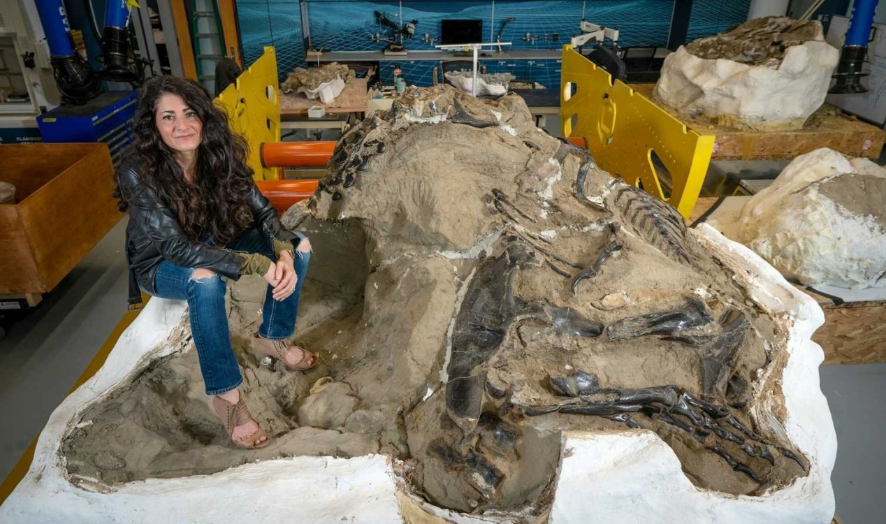 新しく発見された化石の前に立つリンゼイ・ザノ。 画像クレジット: N.C. State University