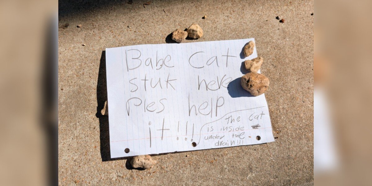 チュタックさんは子供たちが残したメモの場所に行き、さらに聞こえてくるかすかな「ニャー」という声に気づきました。🐾彼女はマンホールの蓋を開けて、中を覗くと、なんと小さなカリコ猫が!!✨