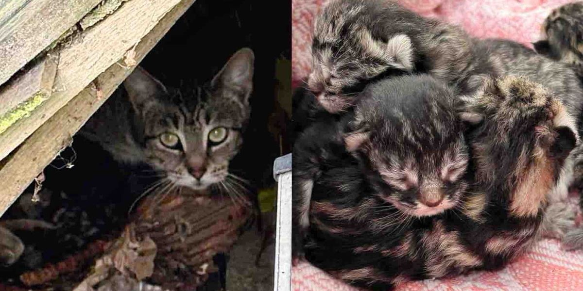 ある日、ボランティアのグループ「The Stray Cat Club」が、壊れたフェンスの下に隠れていた猫とその子猫たちを見つけたんだ。この猫は、なんと4匹の子猫を産んでいたんだって!母猫を室内に移した後、実はもう1匹の子猫もいたのを発見したの。