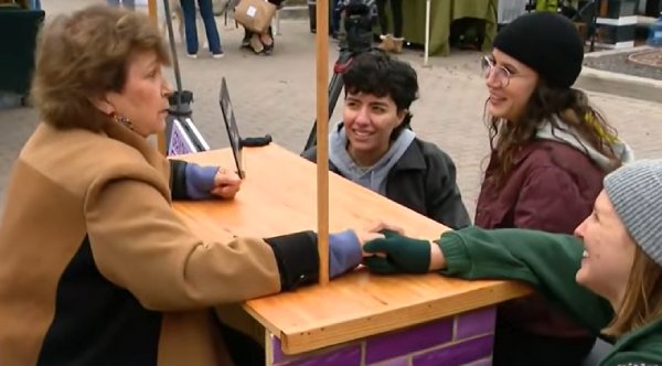 エイリーンさんは102歳でお亡くなりになったけれど、マイクさんは彼女の思いを引き継いで、おばあちゃんスタンドを復活させました!彼女の好きな紫色のブースがその象徴です。これからも、多くの人が寄り添い、励ます素敵なおばあちゃんたちが集まっています。