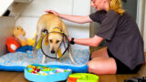 数日後、ベアが猫のおもちゃで遊んでいると、子猫たちもそれを真似し始めました。彼らは自信を持ち始め、遊び方を学んでいくんです。「ベアはまるで大きな子猫みたい。」って感心するジェニファーの言葉、すごくかわいいよね💕。