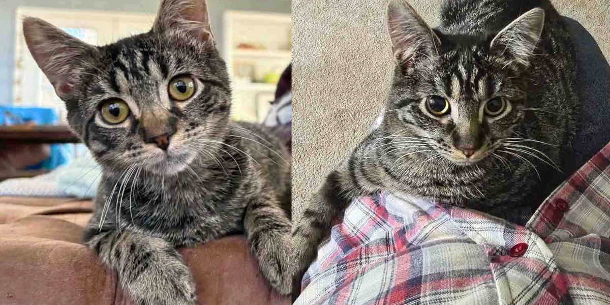 そして、マックは地域の大きなタビーとも仲良しになり、一緒にソファで寝るように。😴「今ではとても楽しいお調子者に変身しました。マックは甘さと面白さを兼ね備えた完璧な子です!」とスパークルキャットレスキューの社長が語ります。