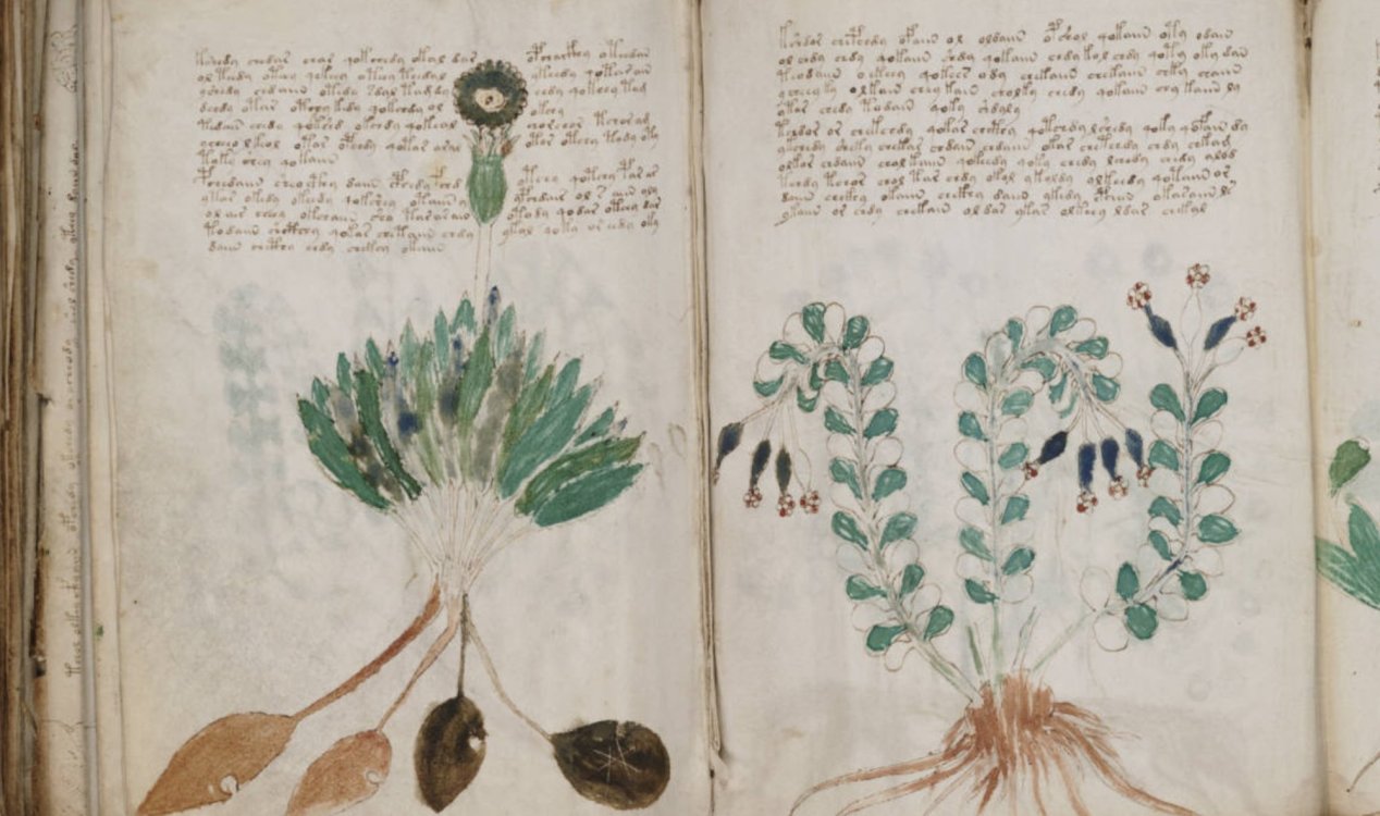 この手稿は、15世紀初めに作られたとされる高級なカーフスキンのパーチメント(薄い皮革)に書かれていて、どんな言語かもわからないまま、研究者たちは頭を悩ませてきたのよ。😅