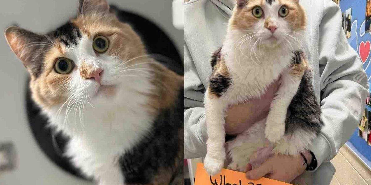ある日、サッカーフィールドで一人ぼっちだった三毛猫のピーチちゃんが、クライフトン動物シェルターに運ばれてきました。彼女は、まだお子ちゃまのように見える、1〜2歳の猫ちゃんで、体重はなんと5.5ポンド(約2.5キロ)しかありませんでした。これは、5ヶ月の子猫くらいのサイズです!🏷️