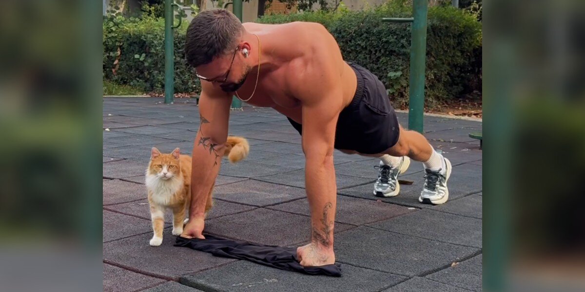 【海外】公園でエクササイズ中の男性、野良猫の“お持ち帰り要求”に驚愕!あなたもこの愛らしい瞬間を見逃すな!