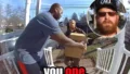 そして、慎重にアヒルたちを囲み、即席の囲いの中に入れていきます。