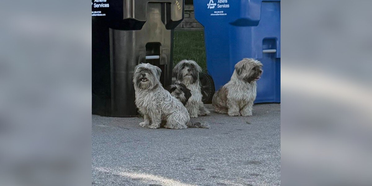 通常、捨てられた犬は、その場に留まって家族の帰りを待つことがよくあります。でも、4匹の成犬が一緒に捨てられるのは珍しいことです。彼らはお互いのそばを離れず、ずっと待っていました。