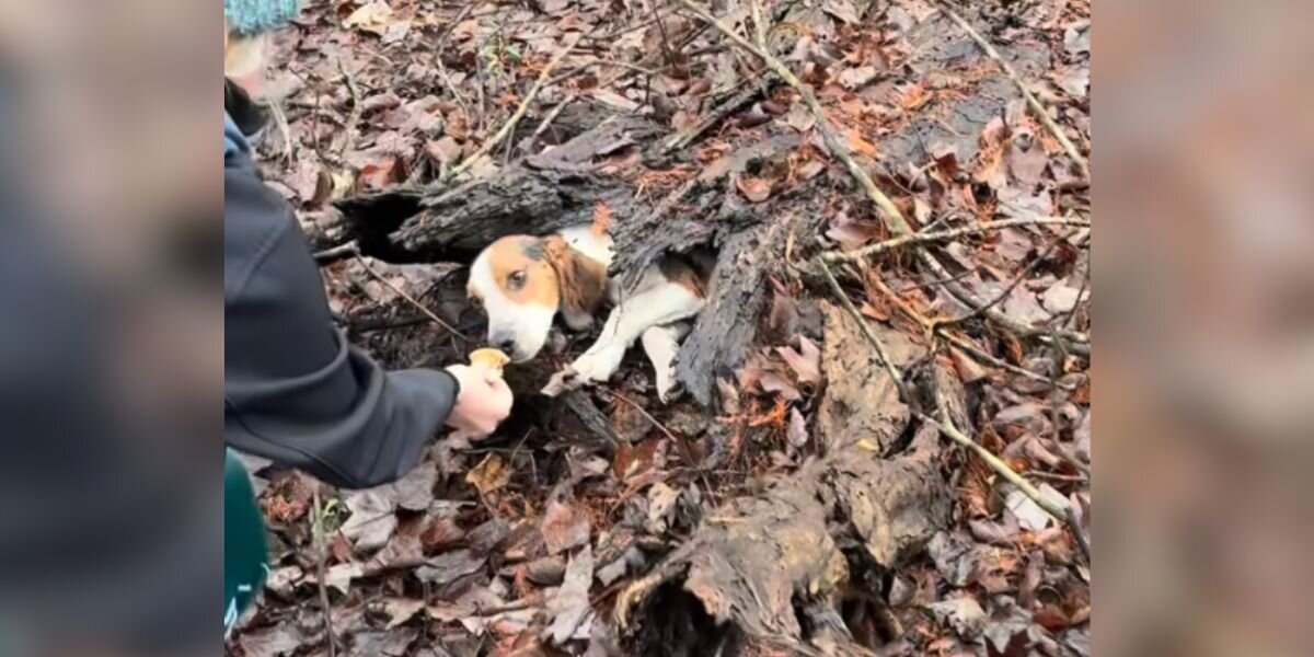 この「小さなサバイバー」は、嵐からの避難所を求めて腐った丸太の中に隠れていました。彼の切ない顔が、助けを求めて出てきていたのです。