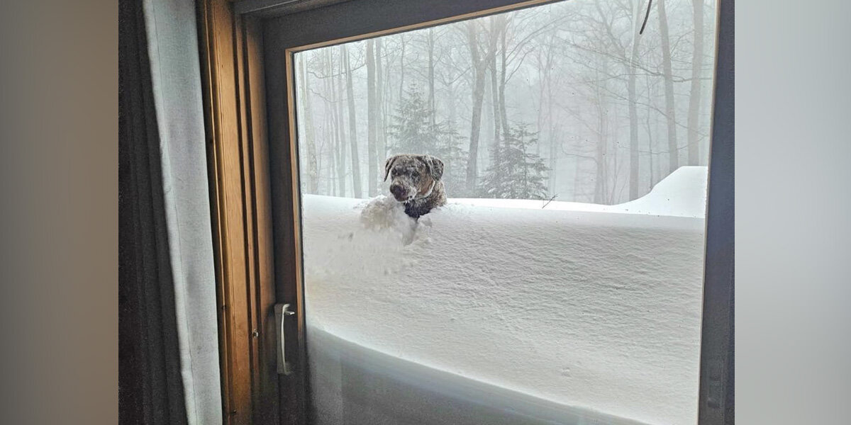 ある冬の午後、ミシガン州の北のキャビンにいたジェニー・パルツァーさんは、雪に覆われた自宅のデッキでちょっと変わった光景を目にしました。スライディングドアの外から、ふわふわの顔が覗いていたんです!