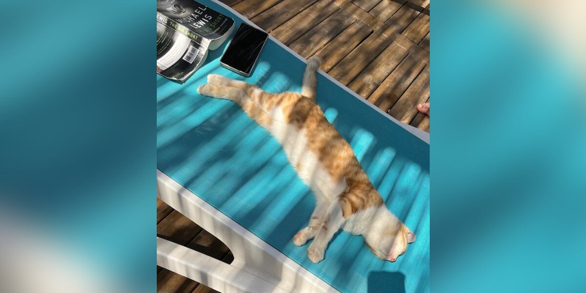 旅行初日、ホテルのプールで泳いだ後、二人が戻ってきたら、なんとフワフワのオレンジ色の猫がローチェアでスヤスヤ寝ていました。この猫、後に「パック」と名付けることになるんですが、ホテルでは猫がよく見られるので、特に珍しくはなかったんです。でも、パックには何か特別な魅力があったんですよね!✨