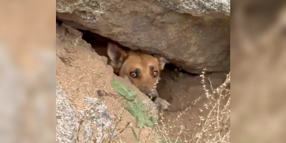 カリフォルニアの南部、パームスプリングスの西側にある岩だらけのエリアで、妊娠中の野良犬が、安全な出産場所を探していました。彼女は大きな岩によってできた小さな洞窟を見つけ、そこが完璧な避難所だと感じました。